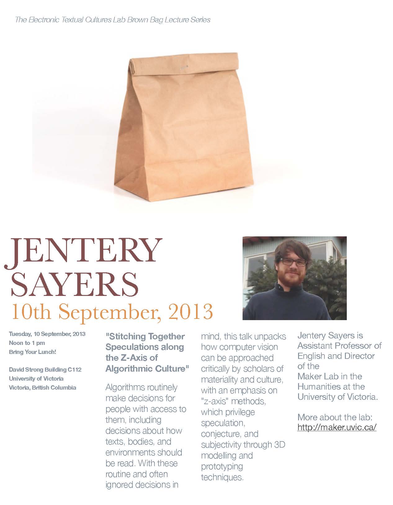 Sayers to Speak during ETCL Brown Bag Series The Electronic Textual Cultures Laboratory at the University of V[...] continue reading →