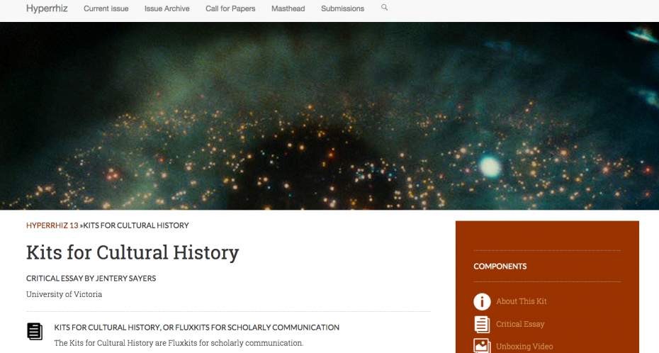 This project was completed in October 2015 and exhibited at Rutgers University, with publications in Hyperrhiz and Visible Language and a CBC Radio interview that same year. The lab also created a public repository containing all files related to the kit. To learn more about the kit, see the stream of posts below. Please do not hesitate to either comment on a post or email maker@uvic.ca with feedback.