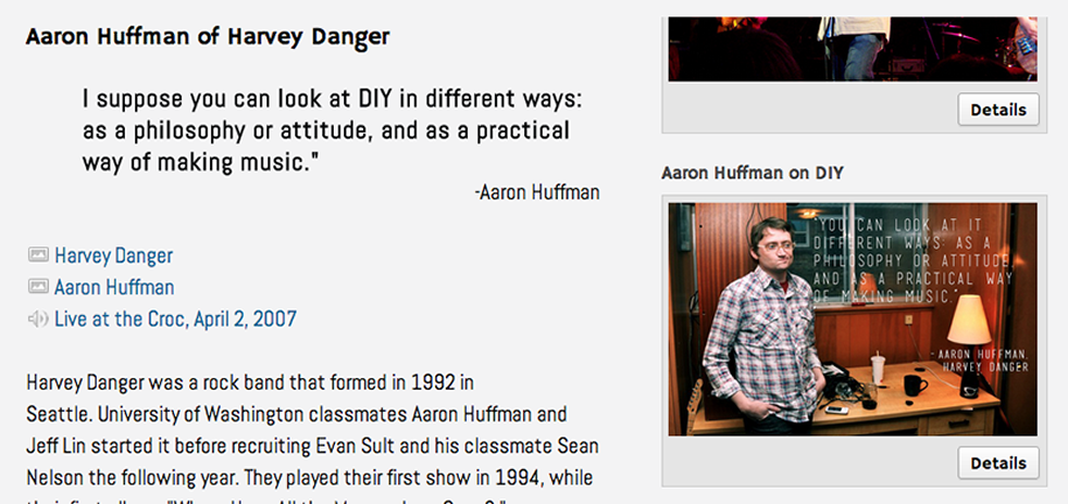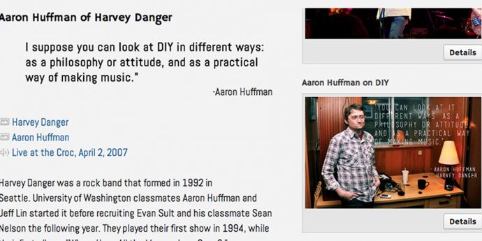 Screengrab of the Crocodile Cafe Exhibit, which features audio of an interview with Ian MacKaye. Interview conducted by Jentery Sayers at the Dischord House.