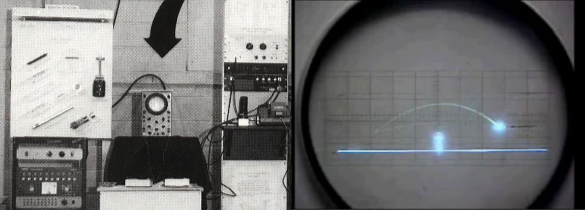 The development of Tennis for Two can be traced back to the computing functions of the Donner Model 30, whose instruction booklet provides examples for calculating ballistic missile trajectories, bullet trajectories, and a bouncing ball (accounting for gravity and wind resistance). The use of the oscilloscope to display these trajectories also has an earlier historical precedent: before researching at Brookhaven, Higinbotham developed the first CRT-based radar displays (at the MIT Radiation Laboratory) that were later implemented in the radar tracking system for the B-52 bomber. Again, in his notes, Higinbotham writes: “This involved designing means to present the echoes returned from distant targets on cathode-ray tubes, in angle and distance, not far from the problems involved in the tennis game display.” Higinbotham also developed electronics for nuclear bomb deployment as part of the Manhattan Project.
