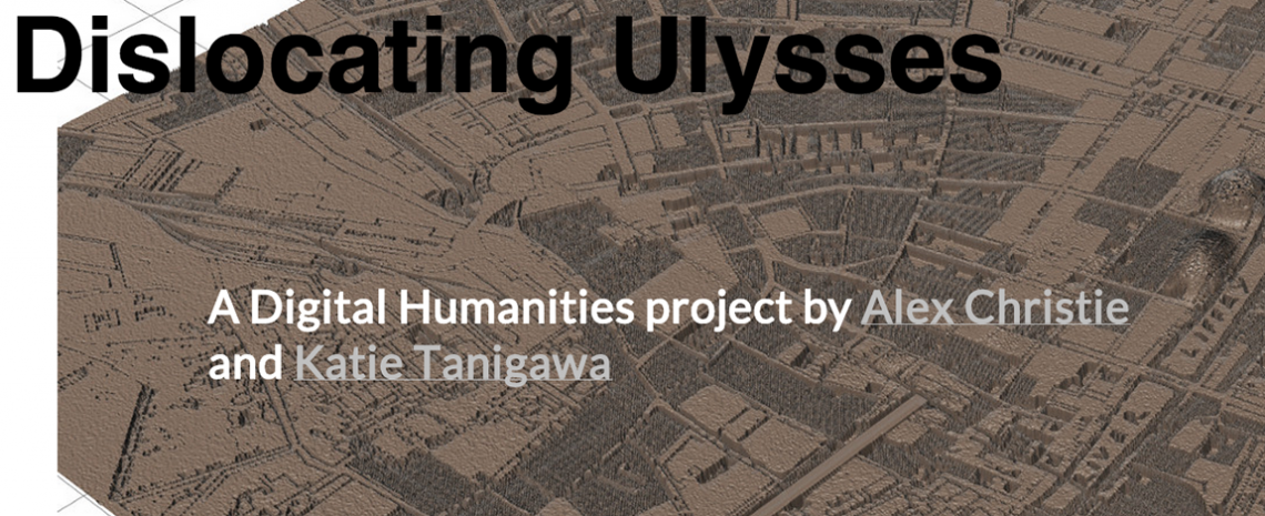 Christie and Tanigawa’s collaborative English 507 (Spring 2013) project, “Dislocating Ulysses,” combines traditional literary analysis, archival research, geospatial mapping, and 3D modelling techniques in order to ask how data is (or can be) embodied and felt. Following the course objectives, Christie and Tanigawa (both PhD students in English) used materials from UVic’s Special Collections to develop a prototype for mapping readers’ geotemporal experiences of James Joyce’s Ulysses.