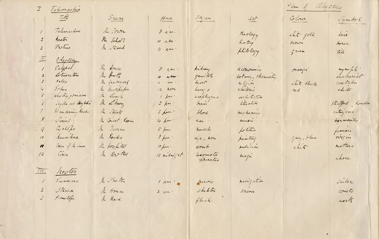 While the notion of the arranger provides a Joycean justification for my editorializing, it does not provide a structural framework for the #YoU publication. In attempting to conceive of such a structure, I found myself drawn to Joyce’s own schemas for Ulysses. Recognizing the necessity for such schemas to navigate the “enormous complexity of [his] monster-novel,” Joyce produced two such frameworks/skeleton keys—the earlier Lineta and the later Gilbert: