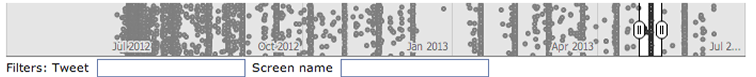While such an episodic approach to the #YoU data may appear peculiar given the apparent chaos of the data visualization, arranging the #YoU by date clearly demonstrates the episodic nature of the conversation: