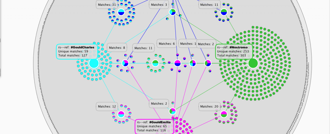 Nostromo arose as a prime text to work with because of the detailed but progressive changes in names, places, and speech, and the quantitatively substantial additions and omissions between the texts (including a 20,000 word addition that appears at the end of the Harper’s edition of the text). Cedric Watts and Xavier Brice write extensively about these changes between Nostromo editions. The project will build upon the scholarship of Watts and Brice with the aim of revealing relationships with each text and between both texts hitherto difficult to record and analyse without the use of versioning and visualization tools.