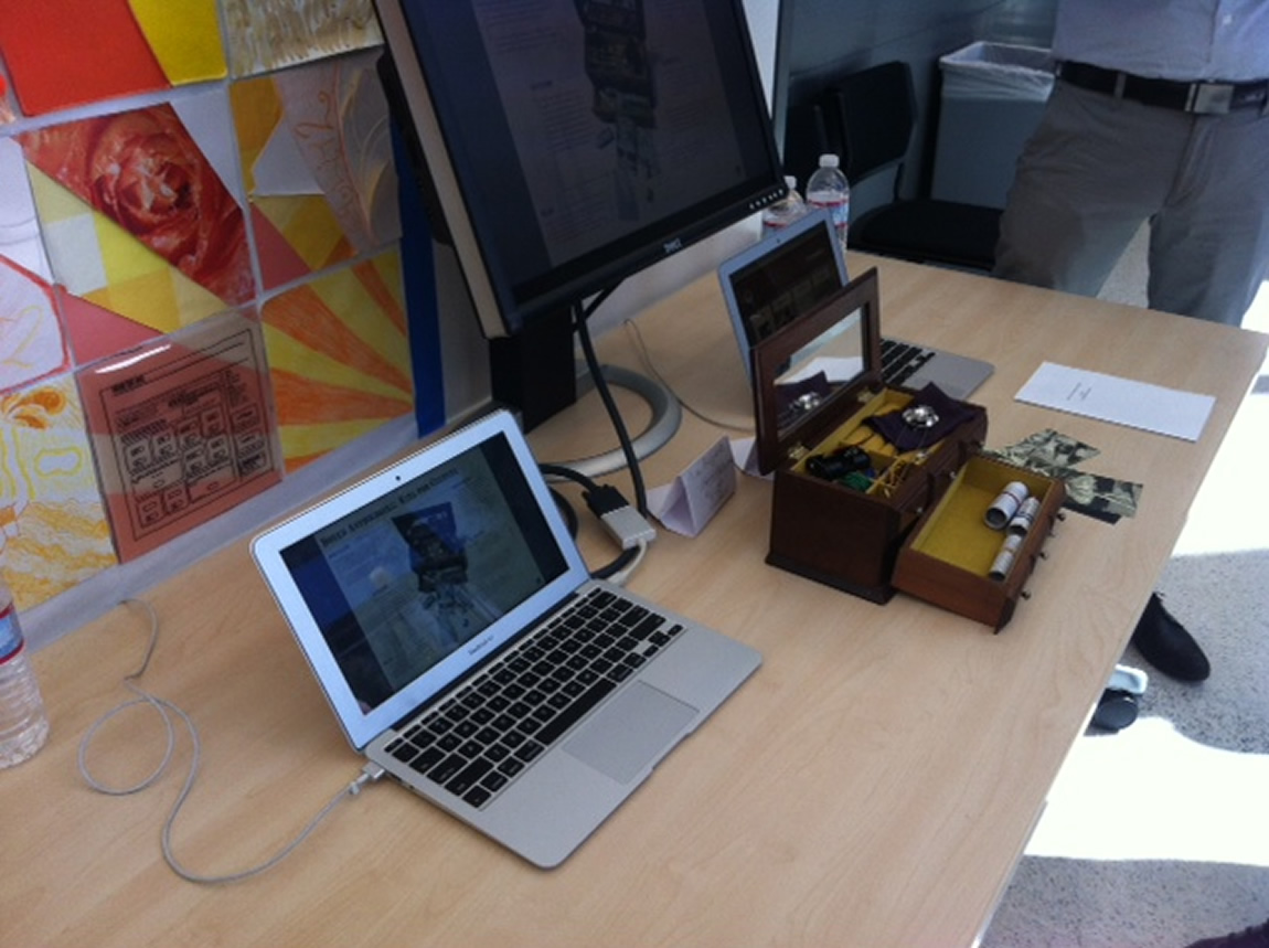 During the poster session at the WHA meeting, we had the wonderful opportunity to speak in person to a large number of attendees, who directly engaged our prototype; they picked it up, touched the component parts, and asked questions about the ways in which the elements would work together. These interactions gave us the opportunity to gauge the kind of scholarship the kits prompt. Once the participants were able to see, touch, and experience the kit, they also contributed insightful comments and questions for us to consider as we further develop the project: What is the scholarly apparatus of the kits? How will they be disseminated? How will they be used? How (if at all) will they intersect with other modes of scholarly communication, including journal articles and monographs?