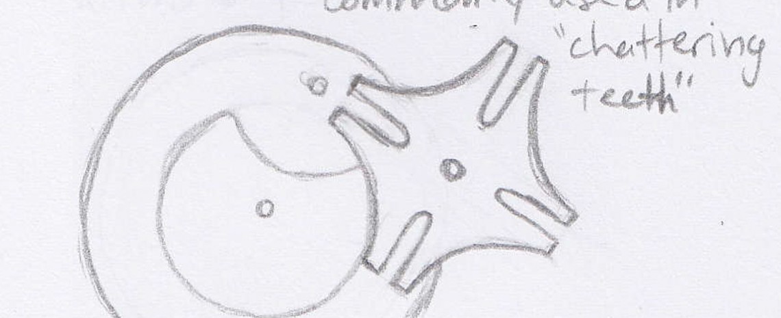 For the early wearables kit, the Maker Lab Team and I thought it would be interesting to recreate Trouvé’s skull stick-pin. The skull’s teeth gnash, and the eyes light up when it is turned on by a battery, which is placed in the wearer’s pocket. I’m currently designing the stick-pin using some 3D-modelling software. Then we’ll print both the skull and gear system using the Maker Lab’s Prusa i3.