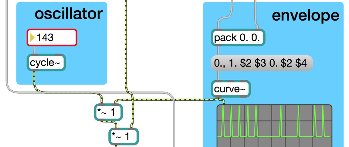 To create this model, I turned to Max/MSP, a real-time visual programming language and one of the critical programs released around 1996 that contributed to the sea-change in microsound, planting the sound particle within the soil of real-time digital signal processing and placing it in the hands of artists outside institutional walls. Max/MSP is centred around the idea of a “patch,” borrowed from the history of analog modular synthesizers, in which a sequence of objects—processes or programs—are patched together with chords, creating a single system. Now, for many years, the basic materials of microsound comprised of orchestral ensembles, probability distributions, analog oscillators, magnetic tape, splicers, punchcards, and batch-processing mainframe computers. So, of course, there exists a rather severe anachronism in using real-time signal processing programs to represent labour-intensive and non-real time processes; in this case, however, I was primarily interested in the formal relations between the grain and the glitch. Nevertheless, the drastic interface shift from the punchcard to real-time processing cannot be forgotten but nor should the shift from mediation-as-process to mediation-as-world, as I believe we see between the grain and the glitch, be forgiven as just a matter of technological change.