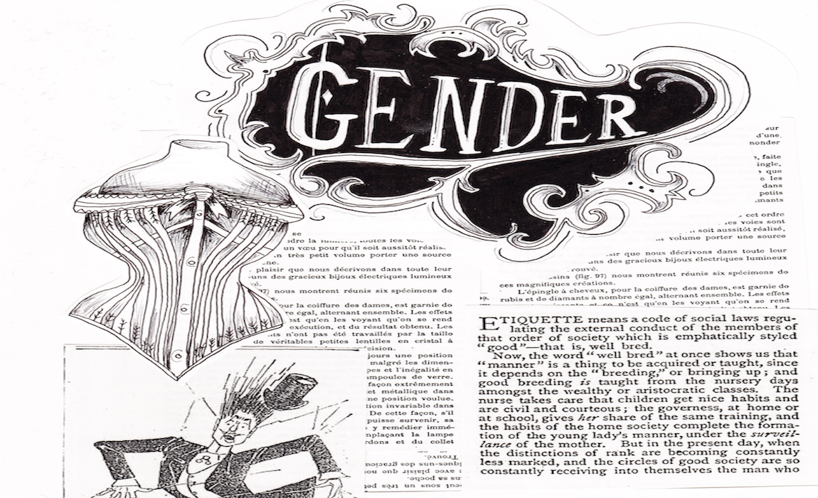 In order to situate early wearables in the context of Victorian culture, we explored six aspects or “keywords” (in the tradition of Raymond Williams’s work) that may have contributed either to the skull’s design or to the way early wearables such as the skull stick-pin were received. The sections on clocks and telegraphs briefly touch on the way those technologies may have influenced Trouvé’s design choices, while the segments on class and gender give some context for cultural etiquette around jewellery during the period. The mourning section addresses mourning jewellery traditions in Victorian culture, where skulls were significant symbols central to what Susan Elizabeth Ryan calls “dress acts.” Additionally, the section about performance describes instances where Trouvé’s jewellery was worn publicly. As often as possible, we drew this information from books and newspaper articles from the period. Below is a photo of the gender section. In the future, we’ll be adding more sections, including sections on the role race, positivism, and electromagnetic worldviews played in early wearables.
