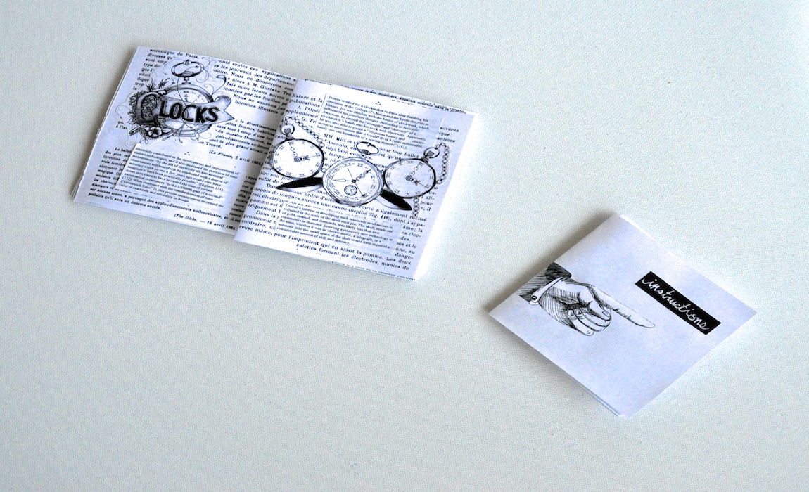 Since we are foregrounding the role that prototyping, revision, and decision-making play in the construction of technologies, we wanted Trouvé’s narration to give the sense that the reader/builder is meant to explore tangible possibilities alongside him instead of somehow replicating his procedures, which—to be clear—we cannot fully recover or even mimic in 2015. The instruction booklet can be read in context with the rest of the guide, but it can also be removed and used during the assembly process. Because the instructions can be held in hand, audiences don’t need to stare at a screen while they are unpacking a kit or making a wearable.