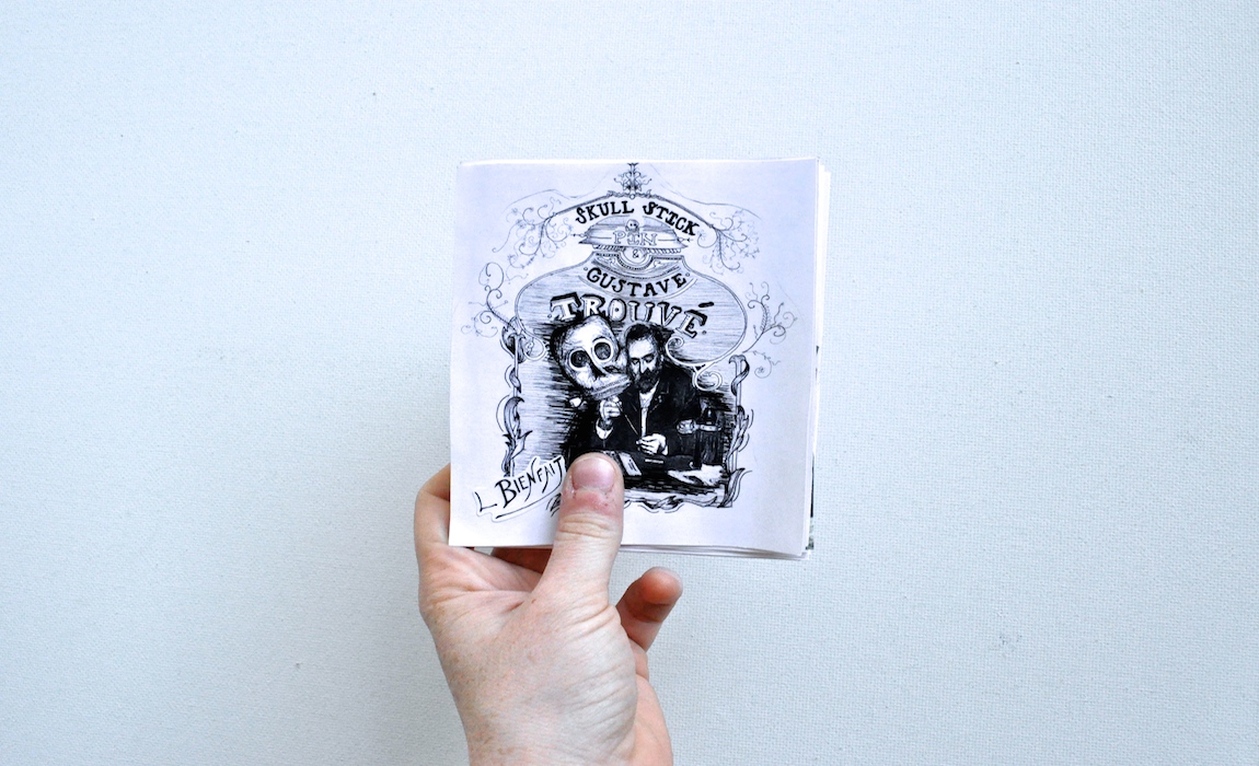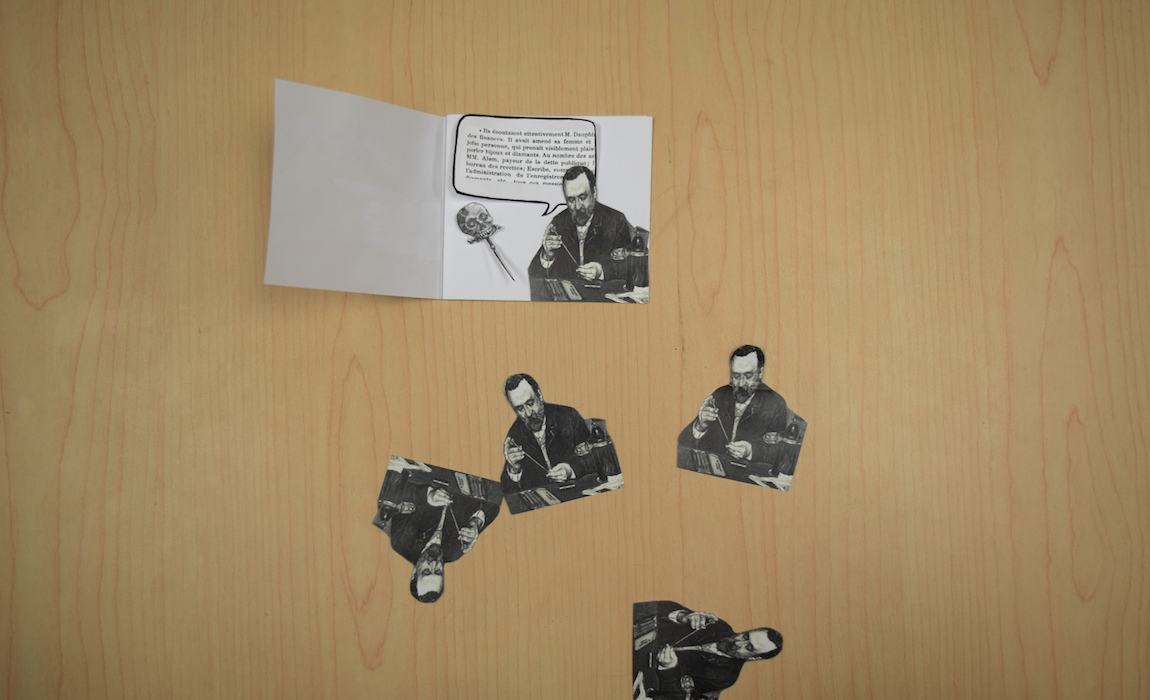 For the inserted instruction booklet, we modified a photograph of Trouvé and turned him into a narrator, who playfully conveys instructions for building the stick-pin in multiple ways. Should audiences trust their narrator? Is he reliable? What is his bias? His pedagogy?