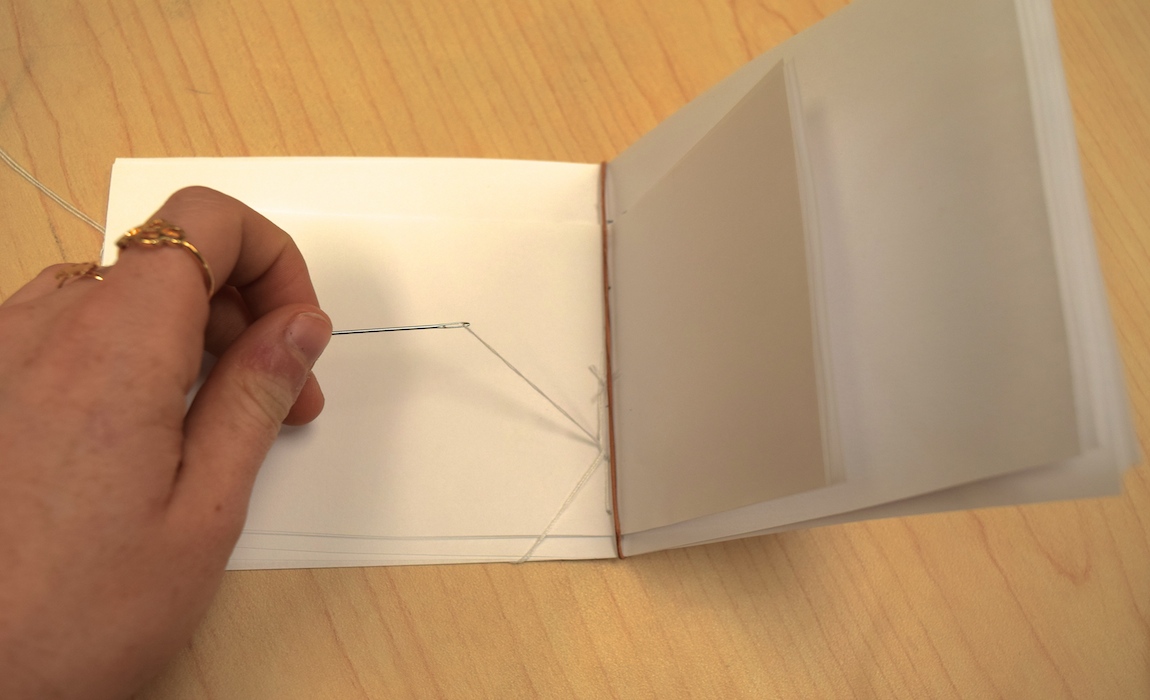 To bind the guide, we used a pamphlet stitch and nested the instruction booklet inside the guide with leather string: