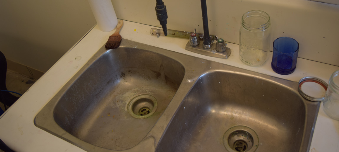 To be clear, spaces for manufacturing must also be safe spaces. Labs require signage, training, protocols, and safety equipment, together with detailed documentation of machine use and procedure. Machines must also be regularly maintained, and tools and supplies need to be cleaned daily. As such, basic fixtures such as sinks (see Figure 6 below), not to mention equipment for extraction and ventilation, are central to the MLab’s operation. They also speak to the need for boundaries between physical places: when, for example, you don’t want your space for manufacturing to overlap with your space for yacking, lounging, digitizing, or encoding. To do digital humanities is to integrate best practices for health, safety, and the environment into your infrastructure and laboratory culture.