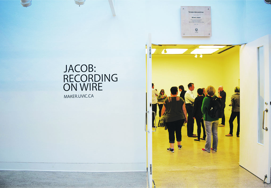 To test and share our research, we held our Jacob: Recording on Wire exhibit at the UVic’s Audain Gallery a few weeks ago. Throughout the week, we conducted a series of demonstrations in the gallery and encouraged participants to imitate the experiment by impressing their voices on the piano wire.
