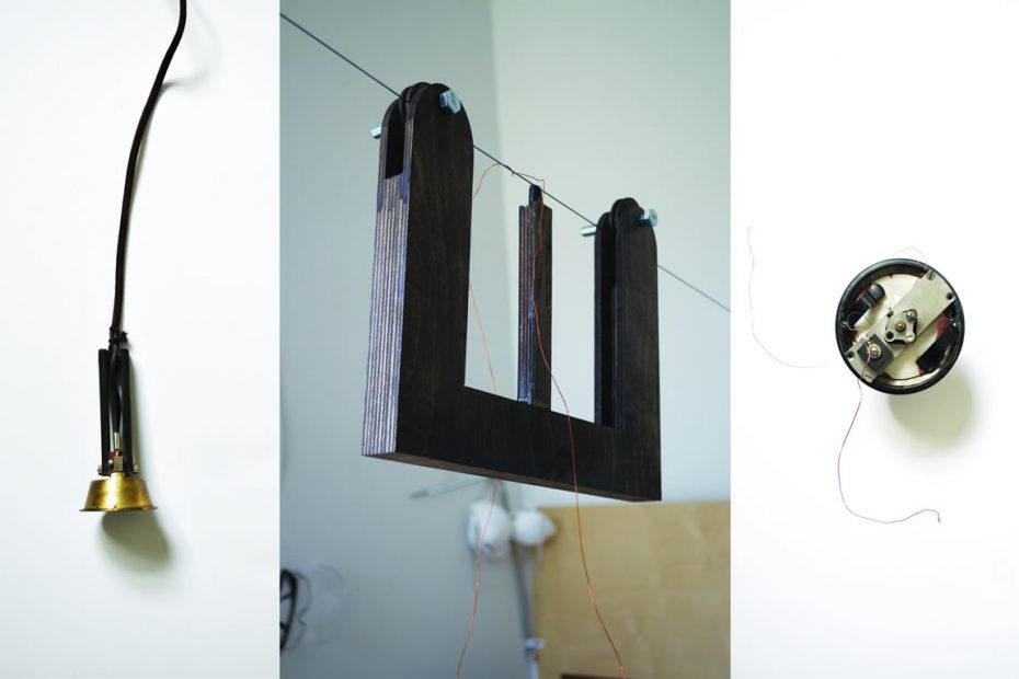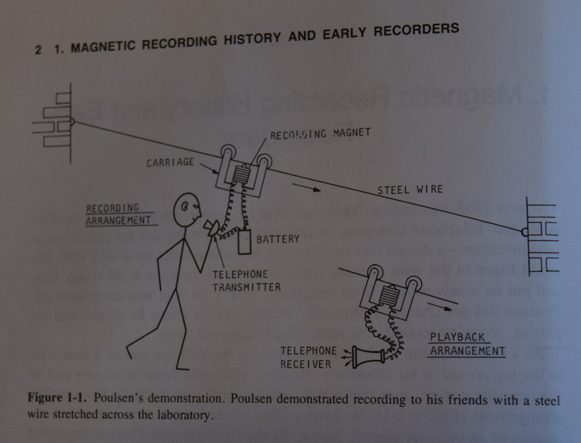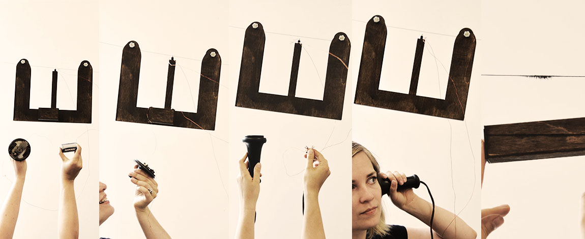 The second volume in the Kits for Cultural History series, the Early Magnetic Recording Kit prompts people to re-perform what many claim was the first magnetic recording experiment, conducted by Valdemar Poulsen as early as 1898. Poulsen holed up in a room in rural Denmark, where he recorded, replayed, erased, and re-recorded the name, “Jacob.” The only known account of this experiment is found in Marvin Camras’s Magnetic Recording Handbook. It contains a simple stick figure drawing of how the experiment apparently worked. Poulsen strung piano wire from one side of a room to the other. Then he ran alongside the wire with a trolley containing an electromagnet. For parts, he deconstructed a wall-mounted telephone and magnetized the wire by connecting a telephone transmitter, a battery, and an electromagnet in a circuit. Poulsen’s voice would vibrate the transmitter’s diaphragm, and the attached electromagnet would run along the wire, leaving a trace or impression of sound. For playback, Poulsen would connect the receiver to the electromagnet. As the electromagnet ran over the magnetized sections of the wire, it caused the receiver’s diaphragm to vibrate. The magnetized sections could then be wiped clean with a permanent magnet. Importantly, the fidelity of the recording was highly contingent upon numerous factors, including the room’s acoustics, the voice speaking, the tautness of the wire, and the speed of a person’s movement with the trolley. The Early Magnetic Recording Kit is interested precisely in these contingencies, or how early magnetic audio was made, not taken or captured.