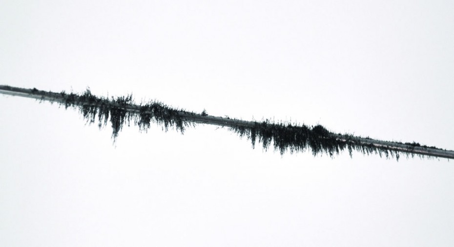 Iron filings reveal impressions of sound on piano wire (image by Danielle Morgan)