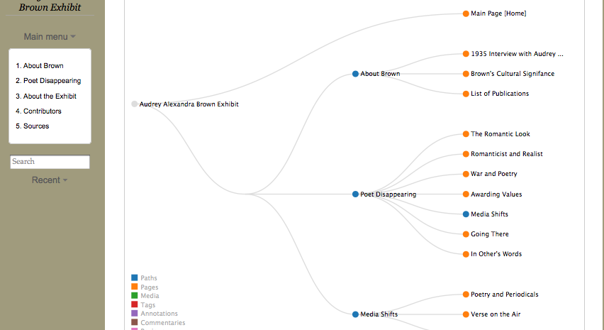 In the context of the Maker Lab, the Brown Exhibit is one of two Scalar books that are now being built to display remediated materials. Like the Crocodile Cafe Exhibit, the Brown Exhibit focuses on a very particular aspect of West Coast culture. Both value the local particularity of their subject matter and the ways culture is made through media. In a broader context, projects such as the Brown Women Writers Project and Orlando are also attempting to recover women writers in a digital environment. These projects all have the goal of bringing attention to the work of writers who have been historically overlooked or marginalized.