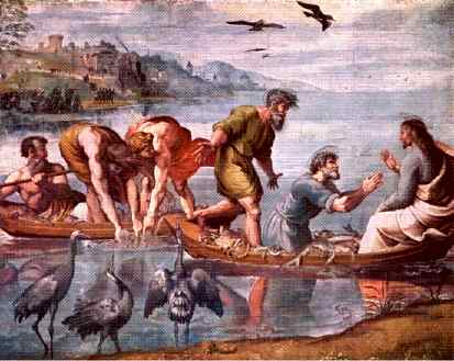 This image of the cartoon on the previous page has been reversed in order to show it as Raphael actually imagined it after the tapestries had been created in a mirror image of the cartoon.