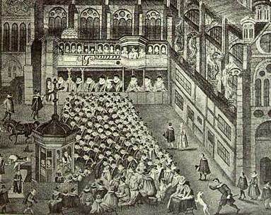 Sermons, religious meditations, the Bible, pamphlets arguing the passionate religious issues of the day: all at their best illustrate the power of Renaissance English to move the reader or listener--some of whom are pictured here listening to a preacher at Saint Paul's Cathedral.