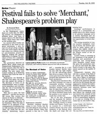 Image name | The Philadelphia Inquirer Review: "Festival Fails to Solve 'Merchant,' Shakespeare's Problem Play" (The Merchant of Venice, Pennsylvania Shakespeare Festival, 2005) |