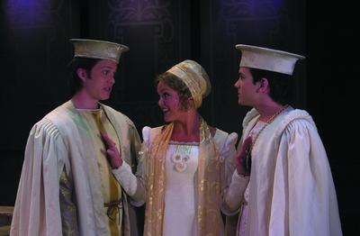 Description | Danforth Comins as Valentine, Carrie Baker as Silvia, and Cameron McNary as Thurio. Photographed by Karl Hugh, Summer 2001. |