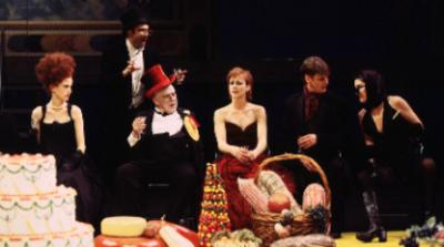 Image name | Bianca, ?, Baptista, Kate, Petruchio and Widow (The Taming of the Shrew, American Repertory Theatre, 1998) |
