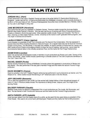 Image name | Team Italy (Shakespeare's Comic Olympics, Upstart Crow Theatre Group, 2004) |