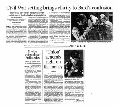Image name | The Vancouver Sun Review: "Civil War setting brings clarity to Bard's confusion" (Troilus and Cressida, Bard on the Beach, 2006) |