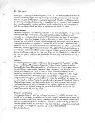 Collection name | Message from the Director (Troilus and Cressida, Bard on the Beach, 2006) |