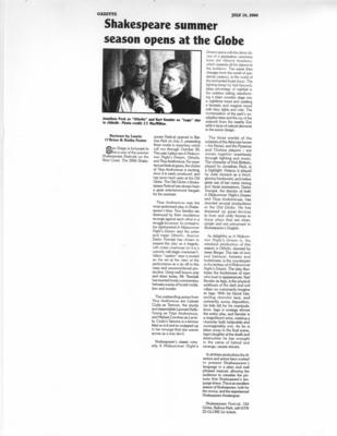 Image name | Gazette Review: "Shakespeare summer season opens at the Globe (The Old Globe, 2006) |