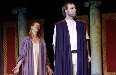Description | Candace Clift as Portia and Mark Woollett as Brutus. Photographed by Kevin Sprague. |