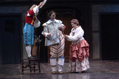 Description | (L to R) Kevin Stanfa as Jack Rugby, Jonathan Croy as Dr. Caius, and Elizabeth Ingram as Mistress Quickly. Photographed by Kevin Sprague. |
