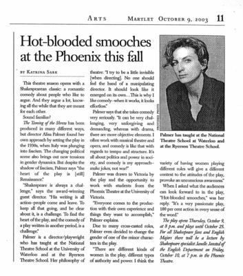 Image name | Martlet Review: "Hot-blooded smooches at the Phoenix this fall" (The Taming of the Shrew, University of Victoria Theatre Department, 2003) |