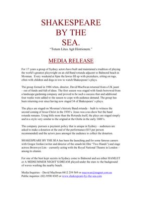 Collection name | Press Release (Shakespeare by the Sea, 2003) |