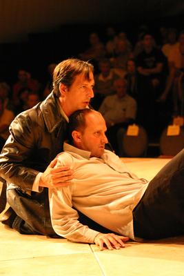 Description | Apemantus (Allan Zinyk) visits the weakened Timon (David Mackay) in Timon of Athens at Bard on the Beach Shakespeare Festival 2007. Photographed by David Blue. |