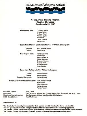 Image name | Flyer (Revelers Showcase, St. Lawrence Shakespeare Festival, 2007) |