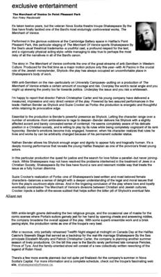 Image name | Aliant.net Review: "The Merchant of Venice in Point Pleasant Park" (Shakespeare by the Sea, 2005) |