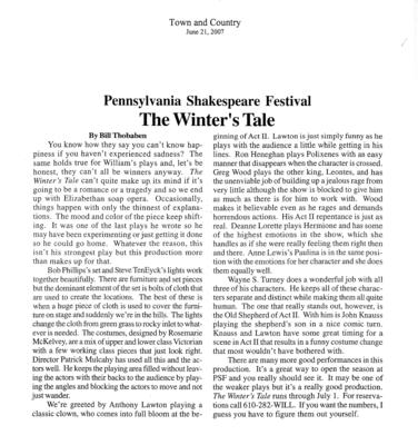 Image name | Town and Country Review: "Pennsylvania Shakespeare Festival The Winter's Tale" (The Winter's Tale, Pennsylvania Shakespeare Festival, 2007) |