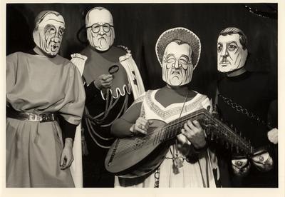 Description | (L to R) Armand Labelle as Le premier roi (Gratien Gélinas), Jean-Pierre Masson as Polonius (Lester B. Pearson), Pierre Thériault as Ophélie (Jean Lesage), and Gilles Renaud as Guildenstern (Jean Marchand). Photo by Studio Lausanne Inc. |