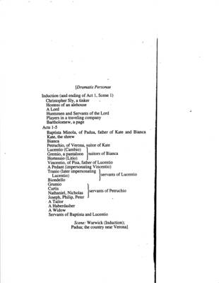 Collection name | Script (The Taming of the Shrew, Bard on the Beach, 2001) |