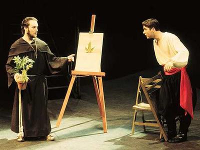 Image name | Friar Lawrence's Herbal Lesson: Paul Donison as the friar and Scott Williams as Romeo (Romeo and Juliet, University of Victoria, Theatre Department, 1998) |