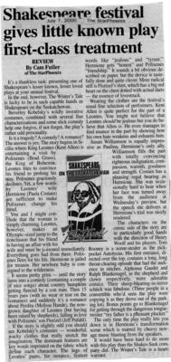 Image name | The StarPhoenix Review: "Shakespeare Festival Gives Little Known Play First Class Treatment" (Shakespeare on the Saskatchewan, 2000) |