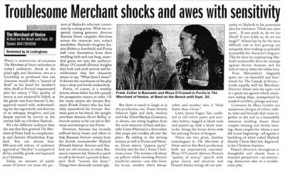 Image name | The Vancouver Courier Review: "Troublesome Merchant Shocks and Awes with Sensitivity" (The Merchant of Venice, Bard on the Beach, 2003) |