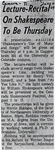 Camera Review: "Lecture-Recital on Shakespeare To Be Thursday" (Colorado Shakespeare Festival, 1964)