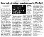 The Morning Call Profile: "Actor Took Extraordinary Steps to Prepare for 'Merchant'" (The Merchant of Venice, Pennsylvania Shakespeare Festival, 2005)
