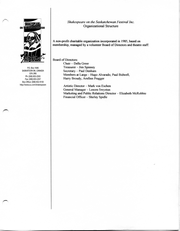 Image nameShakespeare on the Saskatchewan: Organizational Structure