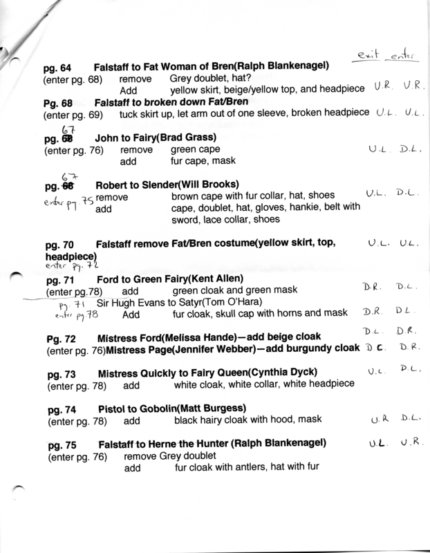 Description | Merry Wives of Windsor: costume changes: Act II. |