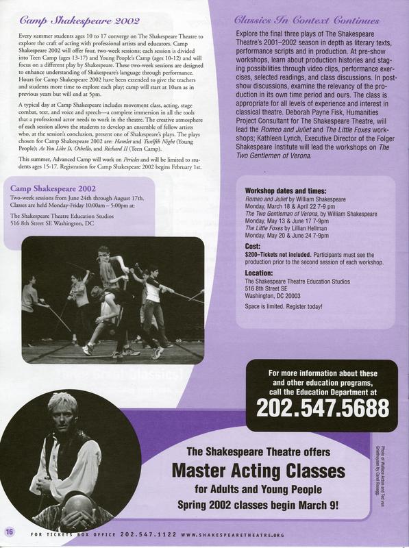 Rights | Artifact © The Shakespeare Theatre [web site] |
