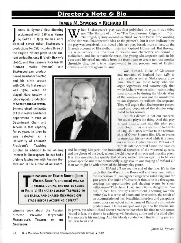Rights | Artifact © Colorado Shakespeare Festival [web site] |