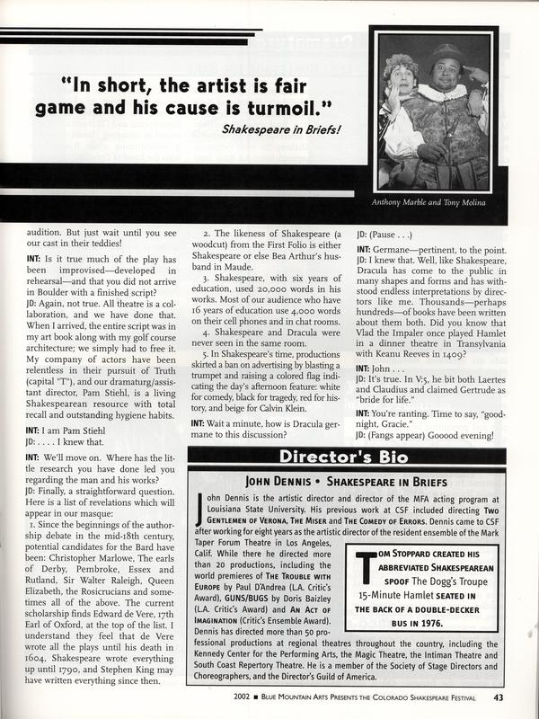 Rights | Artifact © Colorado Shakespeare Festival [web site] |