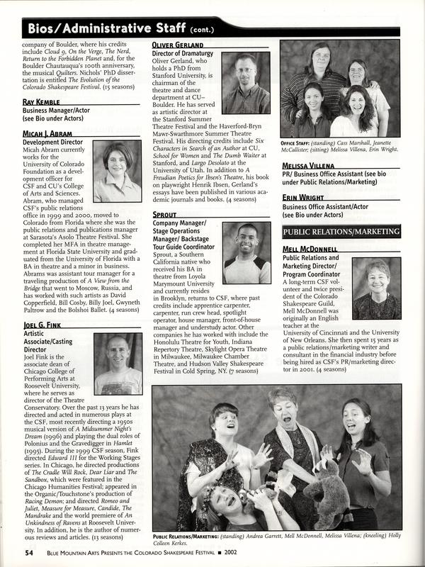 Rights | Artifact © Colorado Shakespeare Festival [web site] |